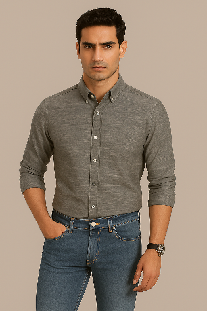 Grey Slub Oxford Shirt